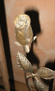 Eine anspruchsvollere Variante, der Fuss des Kerzenständers ist wieder als geschmiedete Rose ausgebildet.